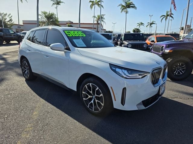 This BMW X3 has many features and is well equipped including Convenience Package (Heated Steering Wheel, Remote Engine Start, Sky Lounge Panoramic Roof, and Travel and Comfort System), 8-Speed Automatic, 12 Speakers, 4-Wheel Disc Brakes, ABS brakes, Air Conditioning, Alloy wheels, AM/FM Radio, AM/FM radio: SiriusXM, Apple CarPlay and Android Auto Compatibility, Auto High-beam Headlights, Auto-dimming door mirrors, Auto-dimming Rear-View mirror, Automatic temperature control, BMW Assist ECall, BMW Iconic Glow Kidney Grille, BMW TeleServices, Brake assist, Bumpers: body-color, Delay-off headlights, Driver door bin, Driver vanity mirror, Dual front impact airbags, Dual front side impact airbags, Electronic Stability Control, Emergency communication system: BMW Assist eCall, Exterior Parking Camera Rear, Four wheel independent suspension, Front anti-roll bar, Front Bucket Seats, Front Center Armrest, Front dual zone A/C, Front reading lights, Front Ventilated Seats, Fully automatic headlights, Garage door transmitter, Heated door mirrors, Heated Front Seats, Heated front seats, Hi-Fi Sound System, Illuminated entry, Knee airbag, Low tire pressure warning, Lumbar Support, Memory seat, Navigation, Navigation system: BMW Maps Navigation, Occupant sensing airbag, Outside temperature display, Overhead airbag, Overhead console, Panic alarm, Passenger door bin, Passenger vanity mirror, Personal ESIM 5G, Power door mirrors, Power driver seat, Power Front Seats, Power Liftgate, Power passenger seat, Power steering, Power windows, Radio data system, Rain sensing wipers, Rear anti-roll bar, Rear Manual Side Window Shades, Rear reading lights, Rear seat center armrest, Rear window defroster, Rear window wiper, Remote keyless entry, Security system, SiriusXM Satellite Radio with 1 Year Subscription, Speed control, Speed-Sensitive Wipers, Split folding rear seat, Spoiler, Sport Seats, Sport steering wheel, Steering wheel mounted audio controls, Tachometer, Telescoping steering wheel, Tilt steering wheel, Traction control, Trip computer, Turn signal indicator mirrors, Variably intermittent wipers, Veganza Perforated and Quilted Upholstery, Wheels: 19" x 8.5" Aero Midnight Grey Bicolor, and Wireless Device Charging. Alpine White 2025 BMW X3 30 xDrive AWD 8-Speed Automatic I4 8-Speed Automatic.