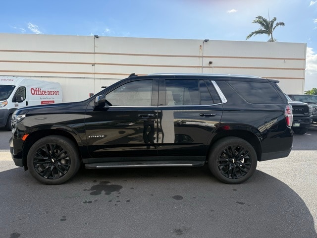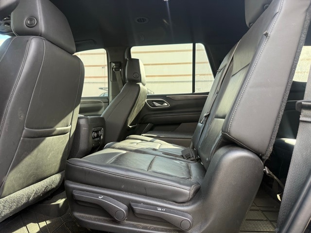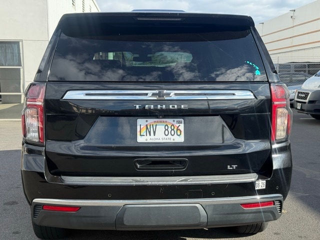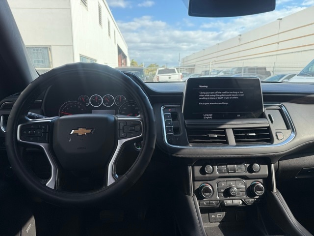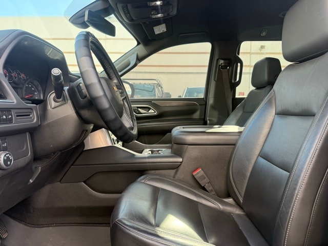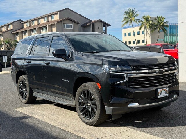 This Chevrolet Tahoe has many features and is well equipped including License Plate Front Mounting Package, Preferred Equipment Group 1LT (1st & 2nd Row Color-Keyed Carpeted Floor Mats, 2 USB Data Ports, Auto-Dimming Inside Rear-View Mirror, Bright Front & Rear Door Sill Plates, Color-Keyed Carpeting Floor Covering, Driver & Front Outboard Passenger Airbags, Floor Console w/Storage Area, Hands-Free Rear Power Programmable Liftgate, HD Radio, Infotainment Display, Leather-Wrapped Steering Wheel, LED Daytime Running Lamps, Memory Settings for Driver, Remote Start, SiriusXM Radio w/360L, and Universal Home Remote), Black Leather, 10-Way Power Driver & Passenger Seat Adjusters, 1st, 2nd & 3rd Rows All-Weather Floor Liners (LPO), 3.23 Rear Axle Ratio, 3rd row seats: split-bench, 4-Wheel Disc Brakes, 9 Speakers, ABS brakes, Air Conditioning, Alloy wheels, AM/FM radio: SiriusXM with 360L, Apple CarPlay/Android Auto, Auto High-beam Headlights, Auto-dimming Rear-View mirror, Automatic temperature control, Black Illuminated Front Bowtie Emblem (LPO), Bose 9-Speaker Stereo Audio System Feature, Brake assist, Bumpers: body-color, Compass, Delay-off headlights, Driver door bin, Driver vanity mirror, Dual front impact airbags, Dual front side impact airbags, Electronic Stability Control, Emergency communication system: OnStar and Chevrolet connected services capable, Four wheel independent suspension, Front anti-roll bar, Front Bucket Seats, Front Center Armrest, Front dual zone A/C, Front High-Back Reclining Bucket Seats, Front reading lights, Fully automatic headlights, Garage door transmitter, Heated door mirrors, Heated Driver & Front Passenger Seats, Heated front seats, Illuminated entry, Leather Seat Trim, Leather steering wheel, Low tire pressure warning, Memory seat, Occupant sensing airbag, Outside temperature display, Overhead airbag, Overhead console, Panic alarm, Passenger door bin, Passenger vanity mirror, Power door mirrors, Power driver seat, Power Liftgate, Power passenger seat, Power steering, Power windows, Premium audio system: Chevrolet Infotainment 3, Premium Smooth Ride Suspension, Radio: Chevrolet Infotainment 3 Plus System, Rain sensing wipers, Rear air conditioning, Rear anti-roll bar, Rear reading lights, Rear seat center armrest, Rear window defroster, Rear window wiper, Remote keyless entry, Roof rack: rails only, Security system, Speed control, Speed-sensing steering, Split folding rear seat, Spoiler, Steering wheel mounted audio controls, Tachometer, Telescoping steering wheel, Tilt steering wheel, Traction control, Trip computer, Variably intermittent wipers, Voltmeter, Wheels: 18" x 8.5" Bright Silver Painted Aluminum, Wheels: 22" Multi-Spoke Gloss Black (LPO), and Wheels: 22" x 9" Steel Interim (LPO) Black 2021 Chevrolet Tahoe LT RWD 10-Speed Automatic with Overdrive EcoTec3 5.3L V8 Black Leather.