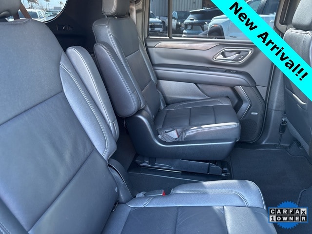 This Chevrolet Suburban has many features and is well equipped including Driver Alert Package (Lane Change Alert w/Side Blind Zone Alert and Rear Cross Traffic Alert), License Plate Front Mounting Package, Luxury Package (2nd Row Pwr Release 60/40 Split-Folding Bench Seat, 3rd Row 60/40 Power-Folding Split-Bench, HD Surround Vision, Heated 2nd Row Outboard Seats, Heated Steering Wheel, Memory Settings, Outside Heated Power-Adjustable Mirrors, Power Tilt & Telescopic Steering Column, and Rear Pedestrian Alert), Preferred Equipment Group 1LT (10-Way Power Driver & Passenger Seat Adjusters, 1st & 2nd Row Color-Keyed Carpeted Floor Mats, Auto-Dimming Inside Rear-View Mirror, Automatic Stop/Start, Bose 9-Speaker Stereo Audio System Feature, Bright Front & Rear Door Sill Plates, Color-Keyed Carpeting Floor Covering, Driver & Front Outboard Passenger Airbags, Enhanced Driver Information Center, Floor Console w/Storage Area, Front & Rear Park Assist, Hands-Free Rear Power Programmable Liftgate, Heated Driver & Front Passenger Seats, Infotainment Display, Leather-Wrapped Steering Wheel, LED Daytime Running Lamps, Memory Settings For Driver, Remote Start, SiriusXM Radio w/360L, Start/Stop System Disable Button, Universal Home Remote, and Wireless Charging), 3.23 Rear Axle Ratio, 3rd row seats: split-bench, 4-Wheel Disc Brakes, 9 Speakers, ABS brakes, Air Conditioning, Alloy wheels, AM/FM radio: SiriusXM with 360L, Apple CarPlay/Android Auto, Auto High-beam Headlights, Auto-dimming Rear-View mirror, Automatic temperature control, Brake assist, Bumpers: body-color, Compass, Delay-off headlights, Driver door bin, Driver vanity mirror, Dual front impact airbags, Dual front side impact airbags, Electronic Stability Control, Emergency communication system: OnStar and Chevrolet connected services capable, Four wheel independent suspension, Front anti-roll bar, Front Bucket Seats, Front Center Armrest, Front dual zone A/C, Front reading lights, Fully automatic headlights, Garage door transmitter, Heated door mirrors, Heated front seats, Illuminated entry, Leather steering wheel, Leather-Appointed Seating, Low tire pressure warning, Memory seat, Navigation System, Not Equipped w/Front & Rear Park Assist, Not Equipped w/Steering Column Lock, Occupant sensing airbag, Outside temperature display, Overhead airbag, Overhead console, Panic alarm, Passenger door bin, Passenger vanity mirror, Power door mirrors, Power driver seat, Power Liftgate, Power passenger seat, Power Release 2nd Row Bucket Seats, Power steering, Power windows, Premium audio system: Chevrolet Infotainment 3 Premium, Premium Smooth Ride Suspension, Radio: Chevrolet Infotainment 3 Premium System, Rain sensing wipers, Rear air conditioning, Rear anti-roll bar, Rear reading lights, Rear seat center armrest, Rear window defroster, Rear window wiper, Remote keyless entry, Roof rack: rails only, Security system, Speed control, Speed-sensing steering, Split folding rear seat, Spoiler, Steering wheel mounted audio controls, Tachometer, Telescoping steering wheel, Tilt steering wheel, Traction control, Trip computer, Variably intermittent wipers, Voltmeter, Wheels: 18" x 8.5" Bright Silver Painted Aluminum, and Wheels: 20" x 9" Painted Aluminum. Black 2022 Chevrolet Suburban LT 4WD 10-Speed Automatic with Overdrive EcoTec3 5.3L V8