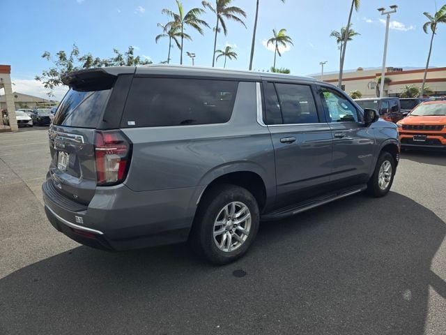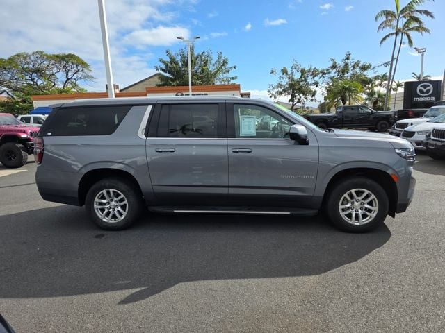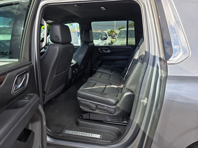 This Chevrolet Suburban has many features and is well equipped including License Plate Front Mounting Package, Preferred Equipment Group 1LT (10-Way Power Driver & Passenger Seat Adjusters, 1st & 2nd Row Color-Keyed Carpeted Floor Mats, Auto-Dimming Inside Rear-View Mirror, Automatic Stop/Start, Bose 9-Speaker Stereo Audio System Feature, Bright Front & Rear Door Sill Plates, Color-Keyed Carpeting Floor Covering, Driver & Front Outboard Passenger Airbags, Enhanced Driver Information Center, Floor Console w/Storage Area, Front & Rear Park Assist, Hands-Free Rear Power Programmable Liftgate, Heated Driver & Front Passenger Seats, Infotainment Display, Leather-Wrapped Steering Wheel, LED Daytime Running Lamps, Memory Settings For Driver, Remote Start, SiriusXM Radio w/360L, Start/Stop System Disable Button, Universal Home Remote, and Wireless Charging), 3.23 Rear Axle Ratio, 3rd row seats: split-bench, 4-Wheel Disc Brakes, 9 Speakers, ABS brakes, Air Conditioning, Alloy wheels, AM/FM radio: SiriusXM with 360L, Apple CarPlay/Android Auto, Auto High-beam Headlights, Auto-dimming Rear-View mirror, Automatic temperature control, Brake assist, Bumpers: body-color, Compass, Delay-off headlights, Driver door bin, Driver vanity mirror, Dual front impact airbags, Dual front side impact airbags, Electronic Stability Control, Emergency communication system: OnStar and Chevrolet connected services capable, Four wheel independent suspension, Front anti-roll bar, Front Bucket Seats, Front Center Armrest, Front dual zone A/C, Front reading lights, Fully automatic headlights, Garage door transmitter, Heated door mirrors, Heated front seats, Illuminated entry, Leather steering wheel, Leather-Appointed Seating, Low tire pressure warning, Memory seat, Navigation System, Not Equipped w/Steering Column Lock, Occupant sensing airbag, Outside temperature display, Overhead airbag, Overhead console, Panic alarm, Passenger door bin, Passenger vanity mirror, Power door mirrors, Power driver seat, Power Liftgate, Power passenger seat, Power steering, Power windows, Premium audio system: Chevrolet Infotainment 3 Premium, Premium Smooth Ride Suspension, Radio: Chevrolet Infotainment 3 Premium System, Rain sensing wipers, Rear air conditioning, Rear anti-roll bar, Rear reading lights, Rear seat center armrest, Rear window defroster, Rear window wiper, Remote keyless entry, Roof rack: rails only, Security system, Speed control, Speed-sensing steering, Split folding rear seat, Spoiler, Steering wheel mounted audio controls, Tachometer, Telescoping steering wheel, Tilt steering wheel, Traction control, Trip computer, Variably intermittent wipers, Voltmeter, and Wheels: 18" x 8.5" Bright Silver Painted Aluminum. Satin Steel Metallic 2022 Chevrolet Suburban LT RWD 10-Speed Automatic with Overdrive EcoTec3 5.3L V8