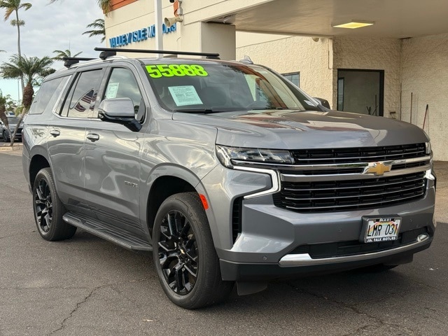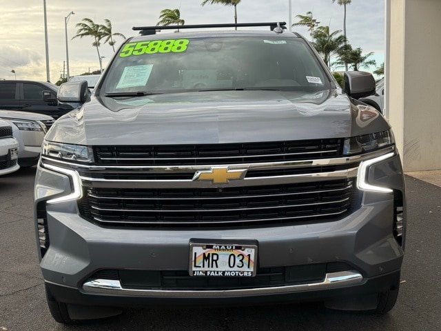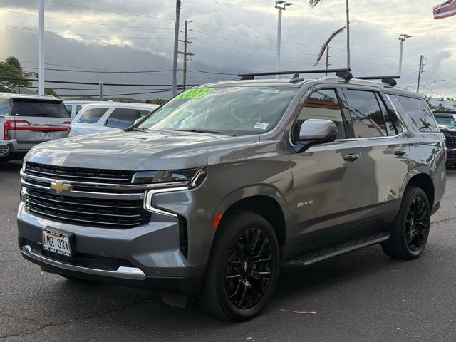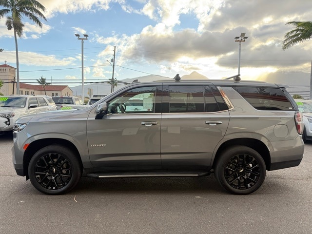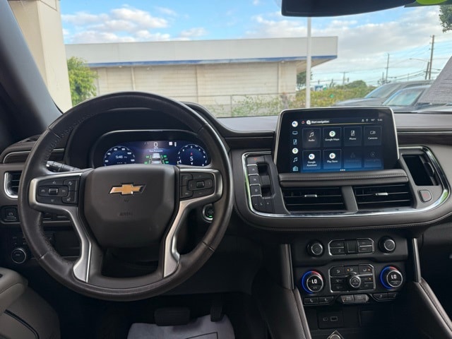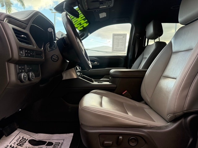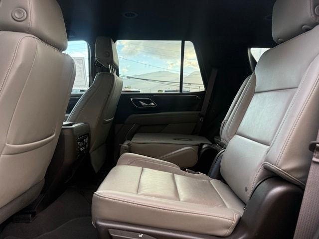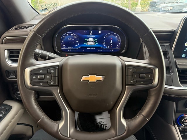 This Chevrolet Tahoe has many features and is well equipped including Driver Alert Package (Lane Change Alert w/Side Blind Zone Alert and Rear Cross Traffic Alert), License Plate Front Mounting Package, Luxury Package (2nd Row Pwr Release 60/40 Split-Folding Bench Seat, 3rd Row 60/40 Power-Folding Split-Bench Seat, HD Surround Vision, Heated 2nd Row Outboard Seats, Heated Steering Wheel, Memory Settings, Outside Heated Power-Adjustable Mirrors, Power Tilt & Telescopic Steering Column, and Rear Pedestrian Alert), Preferred Equipment Group 1LT (1st & 2nd Row Color-Keyed Carpeted Floor Mats, Auto-Dimming Inside Rear-View Mirror, Automatic Stop/Start, Bose 9-Speaker Stereo Audio System Feature, Bright Front & Rear Door Sill Plates, Color-Keyed Carpeting Floor Covering, Driver & Front Outboard Passenger Airbags, Enhanced Driver Information Center, Floor Console w/Storage Area, Hands-Free Rear Power Programmable Liftgate, Infotainment Display, Leather-Wrapped Steering Wheel, LED Daytime Running Lamps, Memory Settings for Driver, Remote Start, SiriusXM Radio w/360L, Start/Stop System Disable Button, Universal Home Remote, and Wireless Charging), 4WD, Gideon/Very Dark Atmosphere Leather, 10-Way Power Driver & Passenger Seat Adjusters, 3.23 Rear Axle Ratio, 3rd row seats: split-bench, 4-Wheel Disc Brakes, 9 Speakers, ABS brakes, Air Conditioning, Alloy wheels, AM/FM radio: SiriusXM with 360L, Apple CarPlay/Android Auto, Auto High-beam Headlights, Auto-dimming Rear-View mirror, Automatic temperature control, Brake assist, Bumpers: body-color, Compass, Delay-off headlights, Driver door bin, Driver vanity mirror, Dual front impact airbags, Dual front side impact airbags, Electronic Stability Control, Emergency communication system: OnStar and Chevrolet connected services capable, Four wheel independent suspension, Front anti-roll bar, Front Bucket Seats, Front Center Armrest, Front dual zone A/C, Front High-Back Reclining Bucket Seats, Front reading lights, Fully automatic headlights, Garage door transmitter, Heated door mirrors, Heated Driver & Front Passenger Seats, Heated front seats, Illuminated entry, Leather steering wheel, Leather-Appointed Seat Trim, Low tire pressure warning, Memory seat, Navigation System, Not Equipped w/Front & Rear Park Assist, Not Equipped w/Steering Column Lock, Occupant sensing airbag, Outside temperature display, Overhead airbag, Overhead console, Panic alarm, Passenger door bin, Passenger vanity mirror, Power door mirrors, Power driver seat, Power Liftgate, Power passenger seat, Power Release 2nd Row Bucket Seats, Power steering, Power windows, Premium audio system: Chevrolet Infotainment System 3, Premium Smooth Ride Suspension, Radio: Chevrolet Infotainment 3 Premium System, Rain sensing wipers, Rear air conditioning, Rear anti-roll bar, Rear reading lights, Rear seat center armrest, Rear window defroster, Rear window wiper, Reflective Window Shade (LPO), Remote keyless entry, Roof rack: rails only, Security system, Speed control, Speed-sensing steering, Split folding rear seat, Spoiler, Steering wheel mounted audio controls, Tachometer, Telescoping steering wheel, Tilt steering wheel, Traction control, Trip computer, Variably intermittent wipers, Voltmeter, Wheels: 18" x 8.5" Bright Silver Painted Aluminum, Wheels: 22" Multi-Spoke Gloss Black (LPO) (SRV), and Wheels: 22" x 9" Steel Interim (LPO) Satin Steel Metallic 2022 Chevrolet Tahoe LT 4WD 10-Speed Automatic with Overdrive EcoTec3 5.3L V8 4WD, Gideon/Very Dark Atmosphere Leather.