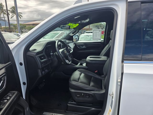 This Chevrolet Tahoe has many features and is well equipped including License Plate Front Mounting Package, Preferred Equipment Group 1LT (1st & 2nd Row Color-Keyed Carpeted Floor Mats, Auto-Dimming Inside Rear-View Mirror, Bose 9-Speaker Stereo Audio System Feature, Bright Front & Rear Door Sill Plates, Color-Keyed Carpeting Floor Covering, Driver & Front Outboard Passenger Airbags, Enhanced Driver Information Center, Floor Console w/Storage Area, Hands-Free Rear Power Programmable Liftgate, Infotainment Display, LED Daytime Running Lamps, Memory Settings for Driver, Remote Start, SiriusXM Radio w/360L, Universal Home Remote, Wireless Charging, and Wrapped Steering Wheel), Black Leather, 10-Way Power Driver & Passenger Seat Adjusters, 3.23 Rear Axle Ratio, 3rd row seats: split-bench, 4-Wheel Disc Brakes, 9 Speakers, ABS brakes, Air Conditioning, Alloy wheels, AM/FM radio: SiriusXM with 360L, Apple CarPlay/Android Auto, Auto High-beam Headlights, Auto-dimming Rear-View mirror, Automatic temperature control, Brake assist, Bumpers: body-color, Compass, Delay-off headlights, Deleted 3 Years of Remote Access, Driver door bin, Driver vanity mirror, Dual front impact airbags, Dual front side impact airbags, Electronic Stability Control, Emergency communication system: OnStar and Chevrolet connected services capable, Four wheel independent suspension, Front anti-roll bar, Front Bucket Seats, Front Center Armrest, Front dual zone A/C, Front High-Back Reclining Bucket Seats, Front reading lights, Fully automatic headlights, Garage door transmitter, Heated door mirrors, Heated Driver & Front Passenger Seats, Heated front seats, Illuminated entry, Leather-Appointed Seat Trim, Low tire pressure warning, Memory seat, Navigation System, Occupant sensing airbag, Outside temperature display, Overhead airbag, Overhead console, Panic alarm, Passenger door bin, Passenger vanity mirror, Power door mirrors, Power driver seat, Power Liftgate, Power passenger seat, Power steering, Power windows, Premium audio system: Chevrolet Infotainment 3 Premium, Premium Smooth Ride Suspension, Radio: Chevrolet Infotainment 3 Premium System, Rain sensing wipers, Rear air conditioning, Rear anti-roll bar, Rear reading lights, Rear seat center armrest, Rear window defroster, Rear window wiper, Remote keyless entry, Roof rack: rails only, Security system, Speed control, Speed-sensing steering, Split folding rear seat, Spoiler, Steering wheel mounted audio controls, Tachometer, Telescoping steering wheel, Tilt steering wheel, Traction control, Trip computer, Variably intermittent wipers, Voltmeter, and Wheels: 18" x 8.5" Bright Silver Painted Aluminum. Summit White 2023 Chevrolet Tahoe LT RWD 10-Speed Automatic with Overdrive EcoTec3 5.3L V8 Black Leather.