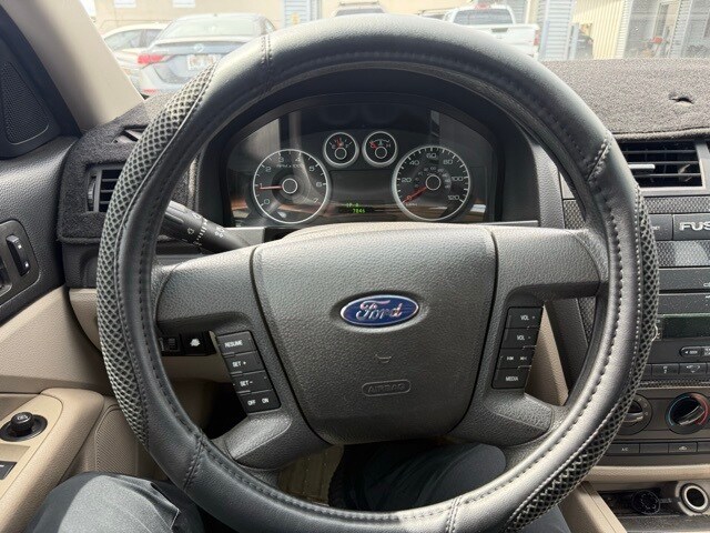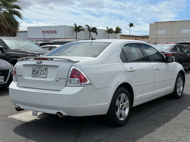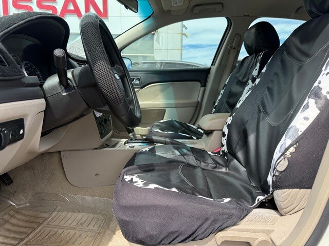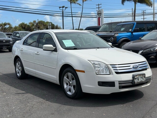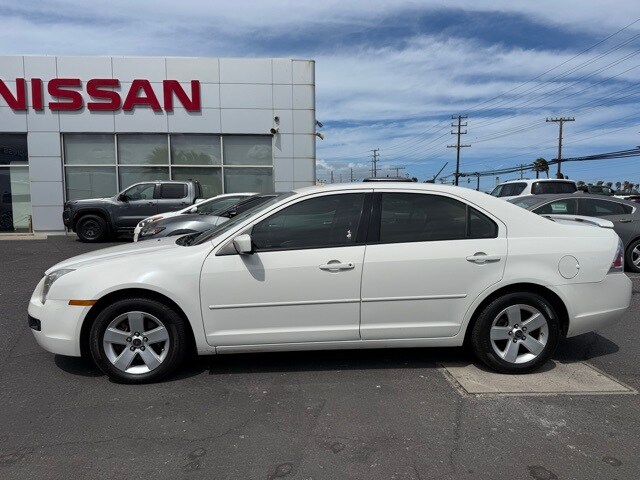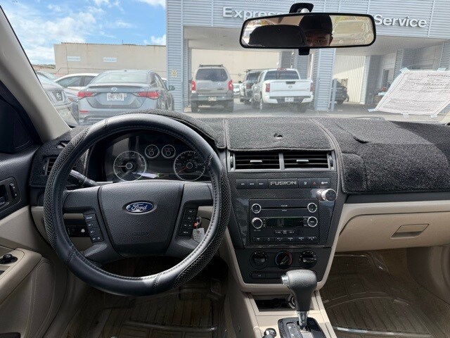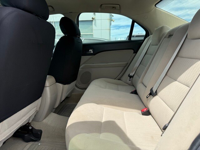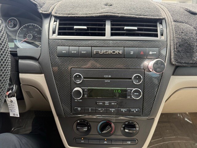 This Ford Fusion has many features and is well equipped including Duratec 3.0L V6, 6-Speed Automatic, 16" Machined Aluminum Wheels, 4-Wheel Disc Brakes, 6 Speakers, ABS brakes, Air Conditioning, Alloy wheels, AM/FM radio, Bodyside moldings, Bumpers: body-color, CD player, Cloth Front Bucket Seats, Driver door bin, Driver vanity mirror, Dual front impact airbags, Dual front side impact airbags, Four wheel independent suspension, Front anti-roll bar, Front Bucket Seats, Front Center Armrest w/Storage, Front fog lights, Front reading lights, Illuminated entry, Low tire pressure warning, Occupant sensing airbag, Overhead airbag, Panic alarm, Passenger door bin, Passenger vanity mirror, Power door mirrors, Power driver seat, Power steering, Power windows, Radio data system, Rear anti-roll bar, Rear seat center armrest, Rear window defroster, Remote keyless entry, Security system, Speed control, Speed-sensing steering, Speed-Sensitive Wipers, Split folding rear seat, Steering wheel mounted audio controls, Tachometer, Telescoping steering wheel, Tilt steering wheel, Trip computer, and Variably intermittent wipers. White Suede Clearcoat 2008 Ford Fusion SE FWD 6-Speed Automatic Duratec 3.0L V6 Duratec 3.0L V6, 6-Speed Automatic.