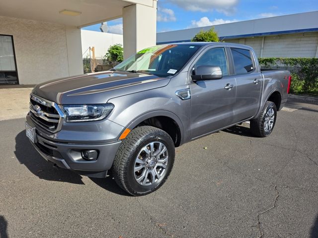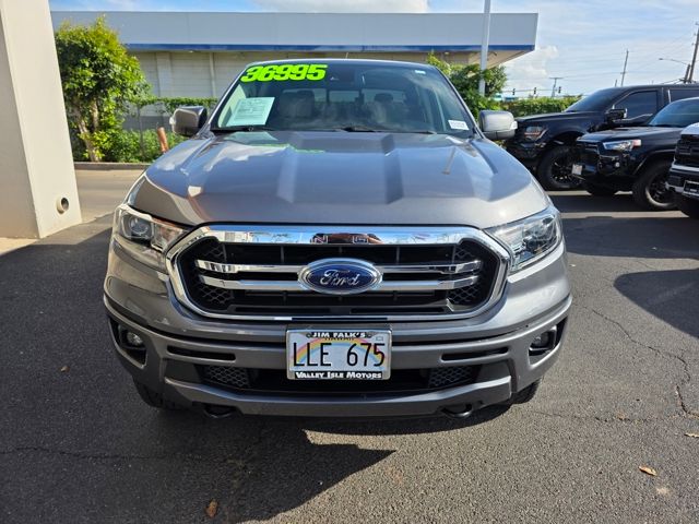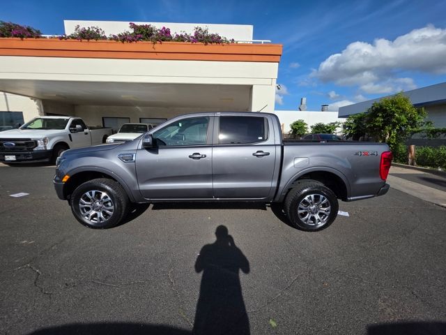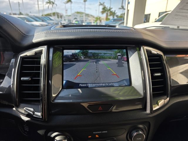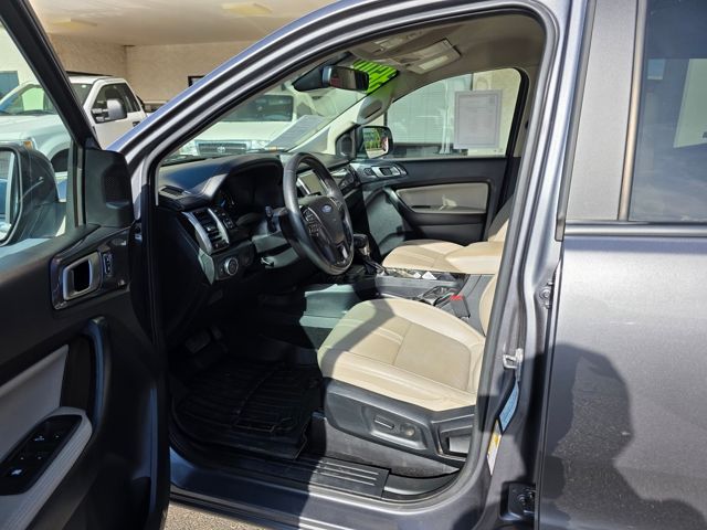 This Ford Ranger has many features and is well equipped including Equipment Group 500A Standard, 4WD, 3.73 Axle Ratio, 4-Wheel Disc Brakes, 6 Speakers, ABS brakes, Air Conditioning, Alloy wheels, AM/FM radio: SiriusXM, AM/FM Stereo, Auto High-beam Headlights, Auto-dimming Rear-View mirror, Automatic temperature control, Brake assist, Bumpers: body-color, Compass, Delay-off headlights, Driver door bin, Driver vanity mirror, Dual front impact airbags, Dual front side impact airbags, Electronic Stability Control, Emergency communication system: SYNC 3 911 Assist, Exterior Parking Camera Rear, Front anti-roll bar, Front Bucket Seats, Front Center Armrest, Front dual zone A/C, Front fog lights, Front Heated Leather-Trimmed Bucket Seats, Front reading lights, Front wheel independent suspension, Fully automatic headlights, Garage door transmitter, Heated door mirrors, Heated front seats, Illuminated entry, Leather Shift Knob, Leather steering wheel, Low tire pressure warning, Occupant sensing airbag, Outside temperature display, Overhead airbag, Overhead console, Panic alarm, Passenger door bin, Passenger vanity mirror, Power door mirrors, Power driver seat, Power passenger seat, Power steering, Power windows, Rear reading lights, Rear seat center armrest, Rear step bumper, Rear window defroster, Remote keyless entry, Security system, SiriusXM Satellite Radio, Speed control, Speed-sensing steering, Steering wheel mounted audio controls, SYNC 3, SYNC 3/Apple CarPlay/Android Auto, Telescoping steering wheel, Tilt steering wheel, Traction control, Tray Style Floor Liner w/Carpet Floor Mats, Trip computer, Turn signal indicator mirrors, Variably intermittent wipers, Voltmeter, and Wheels: 18" Machined Alum w/Stealth Gray Pockets. Gray 2021 Ford Ranger Lariat 4WD 10-Speed Automatic EcoBoost 2.3L I4 GTDi DOHC Turbocharged VCT 4WD.