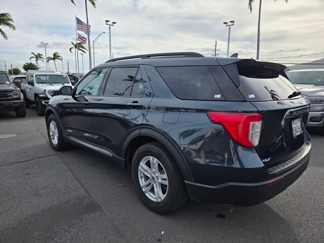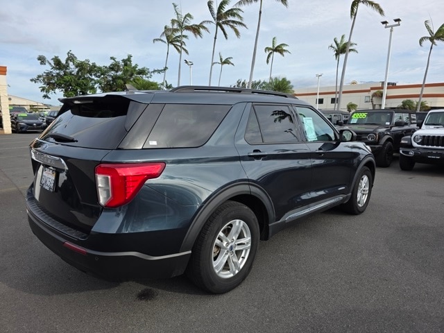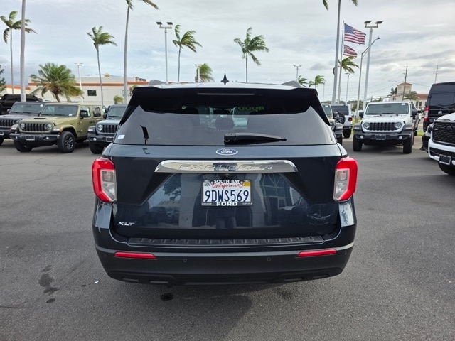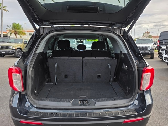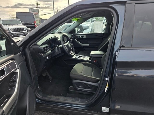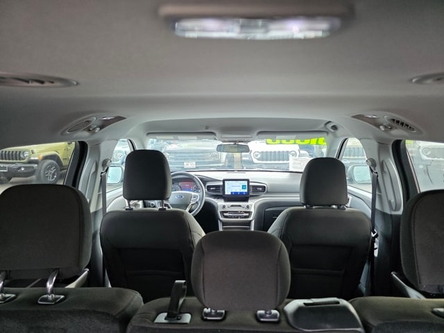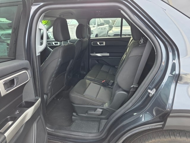 This Ford Explorer has many features and is well equipped including Equipment Group 200A, 1st Row Heated Seats, 2nd Row 35/30/35 Bench w/E-Z Entry & Armrest, 3.58 Non-Limited-Slip Rear Axle Ratio, 3rd row seats: bench, 4-Wheel Disc Brakes, 6 Speakers, ABS brakes, Air Conditioning, Alloy wheels, AM/FM radio: SiriusXM, AM/FM Stereo, Auto High-beam Headlights, Auto Start-Stop Removal, Automatic temperature control, Brake assist, Bumpers: body-color, Compass, Delay-off headlights, Driver door bin, Driver vanity mirror, Dual front impact airbags, Dual front side impact airbags, Electronic Stability Control, Emergency communication system: SYNC 3 911 Assist, Exterior Parking Camera Rear, FordPass Connect, Four wheel independent suspension, Front anti-roll bar, Front Bucket Seats, Front Center Armrest, Front dual zone A/C, Front reading lights, Fully automatic headlights, Heated door mirrors, Heated front seats, Illuminated entry, Knee airbag, Leather steering wheel, Low tire pressure warning, Occupant sensing airbag, Outside temperature display, Overhead airbag, Overhead console, Panic alarm, Passenger door bin, Passenger vanity mirror, Power door mirrors, Power driver seat, Power Liftgate, Power passenger seat, Power steering, Power windows, Rear air conditioning, Rear anti-roll bar, Rear Auxiliary Controls Credit, Rear reading lights, Rear window defroster, Rear window wiper, Remote keyless entry, Roof rack: rails only, Security system, Speed control, Speed-sensing steering, Speed-Sensitive Wipers, Split folding rear seat, Spoiler, Steering wheel mounted audio controls, SYNC 3 Communications & Entertainment System, SYNC 3/Apple CarPlay/Android Auto, Tachometer, Telescoping steering wheel, Tilt steering wheel, Traction control, Trip computer, Unique Cloth Captain's Chairs, Variably intermittent wipers, and Wheels: 18" 5-Spoke Silver-Painted Aluminum. Stone Blue Metallic 2022 Ford Explorer XLT RWD 10-Speed Automatic 2.3L EcoBoost I-4