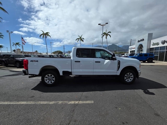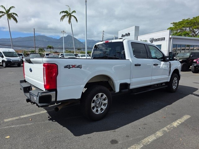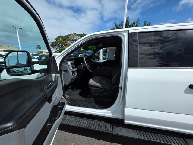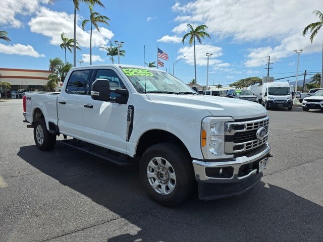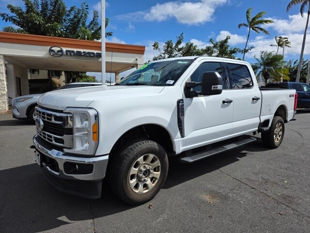 This Ford F-250SD has many features and is well equipped including GVWR: 10,000 lb Payload Package, Order Code 603A, 4WD, 3.73 Axle Ratio, 4-Wheel Disc Brakes, 7 Speakers, ABS brakes, Air Conditioning, Alloy wheels, AM/FM radio, Auto High-beam Headlights, Auto-dimming Rear-View mirror, Brake assist, Bumpers: chrome, Cloth 40/20/40 Split Bench Seat, Compass, Delay-off headlights, Driver door bin, Driver vanity mirror, Drop-In Bedliner (Pre-Installed), Dual front impact airbags, Dual front side impact airbags, Electronic Stability Control, Emergency communication system: SYNC 4 911 Assist, Exterior Parking Camera Rear, Front anti-roll bar, Front Center Armrest w/Storage, Front fog lights, Front License Plate Bracket, Front reading lights, Fully automatic headlights, Heated door mirrors, Illuminated entry, Low tire pressure warning, Outside temperature display, Overhead airbag, Overhead console, Panic alarm, Passenger door bin, Passenger vanity mirror, Platform Running Boards, Power door mirrors, Power driver seat, Power steering, Power windows, Privacy Glass, Radio: AM/FM Stereo/MP3 Player, Rear reading lights, Rear step bumper, Remote keyless entry, Speed control, Split folding rear seat, Steering wheel mounted audio controls, SYNC 4, Tachometer, Telescoping steering wheel, Tilt steering wheel, Traction control, Trip computer, Turn signal indicator mirrors, Variably intermittent wipers, and Wheels: 18" Sparkle Silver Painted Cast Aluminum. Oxford White 2023 Ford F-250SD XLT 4WD 10-Speed Automatic 7.3L V8 PFI OHV 16V Federal 430hp 4WD.