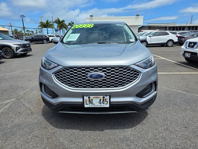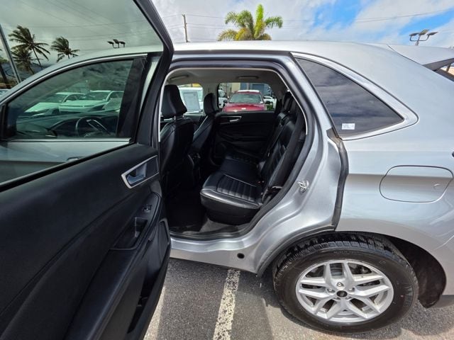 This Ford Edge has many features and is well equipped including Equipment Group 201A, AWD, 3.80 Axle Ratio, 4-Wheel Disc Brakes, 6 Speakers, ABS brakes, ActiveX Trimmed Heated Bucket Seats, Air Conditioning, Alloy wheels, AM/FM radio: SiriusXM with 360L, AM/FM Stereo, Auto High-beam Headlights, Auto-dimming Rear-View mirror, Automatic temperature control, Brake assist, Bumpers: body-color, Compass, Delay-off headlights, Driver door bin, Driver vanity mirror, Dual front impact airbags, Dual front side impact airbags, Electronic Stability Control, Emergency communication system: SYNC 4 911 Assist, FordPass Connect, Four wheel independent suspension, Front anti-roll bar, Front Bucket Seats, Front Center Armrest w/Storage, Front dual zone A/C, Front License Plate Bracket, Front reading lights, Fully automatic headlights, Heated door mirrors, Heated front seats, Illuminated entry, Knee airbag, Leather steering wheel, Leather-Wrapped Steering Wheel, Low tire pressure warning, Occupant sensing airbag, Outside temperature display, Overhead airbag, Overhead console, Panic alarm, Passenger door bin, Passenger vanity mirror, Power door mirrors, Power driver seat, Power passenger seat, Power steering, Power windows, Rear anti-roll bar, Rear Parking Sensors, Rear reading lights, Rear seat center armrest, Rear window defroster, Rear window wiper, Remote keyless entry, SiriusXM w/360L, Speed control, Speed-Sensitive Wipers, Split folding rear seat, Spoiler, Steering wheel mounted audio controls, SYNC 4A w/Enhanced Voice Recognition, Tachometer, Telescoping steering wheel, Tilt steering wheel, Traction control, Trip computer, Variably intermittent wipers, and Wheels: 18" Sparkle Silver-Painted Aluminum. Silver Metallic 2024 Ford Edge SEL AWD 8-Speed Automatic EcoBoost 2.0L I4 GTDi DOHC Turbocharged VCT AWD.