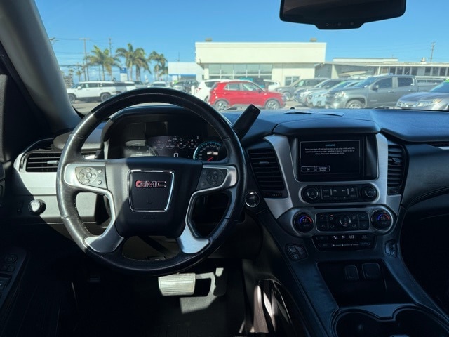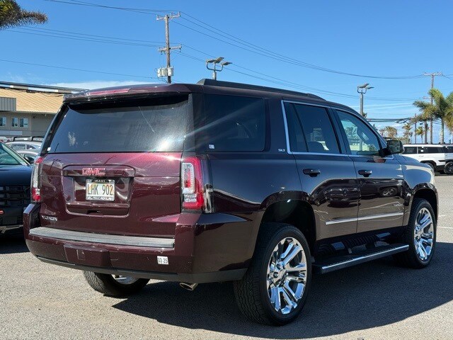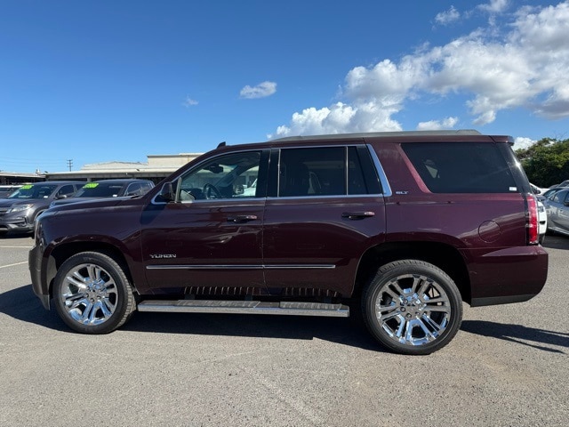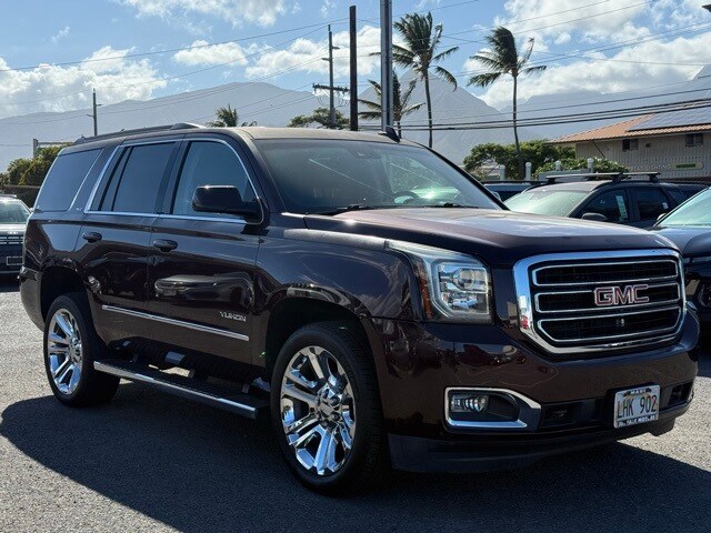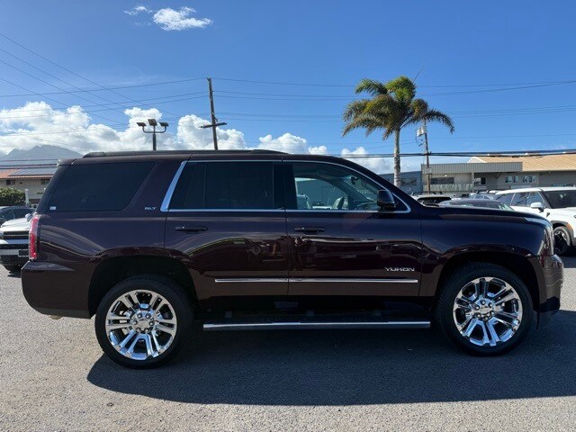 This GMC Yukon has many features and is well equipped including Enhanced Driver Alert Package (Forward Collision Alert Sensor Indicator, Intellibeam Automatic High Beam On/Off Headlamps, Lane Keep Assist, and Low Speed Forward Automatic Braking), License Plate Front Mounting Package, Memory Package, Open Road Package Discount Not Desired, Preferred Equipment Group 4SA (17" Disc/Disc VAC Power Brakes, 5 Auxiliary 12-volt Power Outlets, Black Assist Steps w/Chrome Strip, Hands Free Power Liftgate, Heated Leather-Wrapped Steering Wheel, Inside Rear-View Auto-Dimming Mirror, OnStar Basic Plan For 5 Years, OnStar w/4G LTE, Passive Entry System, Power Release 2nd Row 60/40 Split-Folding Bench Seat, Power Tilt & Telescopic Steering Column, Power-Adjustable Pedals For Accelerator & Brake, Push Button Keyless Start, Rear Cross-Traffic Alert, Remote Keyless Entry, Side Blind Zone Alert w/Lane Change Alert, Universal Home Remote, and Wireless Charging), Premium Edition (22" 6-Spoke Split Chrome (LPO) Wheels, Bright Bodyside Moldings, Chrome Grille Insert (LPO), Polished Exhaust Tip, and Wheels: 22" x 9" Steel Interim (LPO)), Premium Smooth Ride Suspension Package, 3.08 Rear Axle Ratio, 3rd row seats: split-bench, 4-Wheel Disc Brakes, 9 Speakers, ABS brakes, Adjustable pedals, Air Conditioning, Alloy wheels, AM/FM radio: SiriusXM, Apple CarPlay/Android Auto, Auto High-beam Headlights, Auto-dimming door mirrors, Auto-dimming Rear-View mirror, Automatic temperature control, Bose Premium 9-Speaker System, Brake assist, Bumpers: body-color, CD Player, CD player, Compass, Delay-off headlights, Driver door bin, Driver vanity mirror, Dual front impact airbags, Dual front side impact airbags, Electronic Stability Control, Emergency communication system: OnStar Guidance, Exterior Parking Camera Rear, Front anti-roll bar, Front Bucket Seats, Front Center Armrest, Front dual zone A/C, Front fog lights, Front reading lights, Front wheel independent suspension, Full-Feature Reclining Bucket Seats, Fully automatic headlights, Garage door transmitter, Heated & Ventilated Driver & Front Passenger Seats, Heated door mirrors, Heated front seats, Heated rear seats, Heated steering wheel, Illuminated entry, Low tire pressure warning, Memory seat, NavTraffic, Occupant sensing airbag, Outside temperature display, Overhead airbag, Overhead console, Panic alarm, Passenger door bin, Passenger vanity mirror, Pedal memory, Perforated Leather-Appointed Seat Trim, Power door mirrors, Power driver seat, Power Liftgate, Power passenger seat, Power steering, Power Tilt-Sliding Sunroof w/Express-Open/Close, Power windows, Premium audio system: IntelliLink, Radio: AM/FM/SiriusXM, Radio: AM/FM/SiriusXM w/Navigation, Rain sensing wipers, Rear air conditioning, Rear anti-roll bar, Rear reading lights, Rear seat center armrest, Rear window defroster, Rear window wiper, Remote keyless entry, Roof rack: rails only, Security system, SiriusXM Satellite Radio, Speed control, Speed-sensing steering, Split folding rear seat, Spoiler, Steering wheel memory, Steering wheel mounted audio controls, Tachometer, Telescoping steering wheel, Tilt steering wheel, Traction control, Trip computer, Turn signal indicator mirrors, Variably intermittent wipers, Ventilated front seats, Voltmeter, and Wheels: 18" x 8.5" Bright Machined Aluminum. Black Cherry Metallic 2017 GMC Yukon SLT RWD 6-Speed Automatic Electronic with Overdrive EcoTec3 5.3L V8