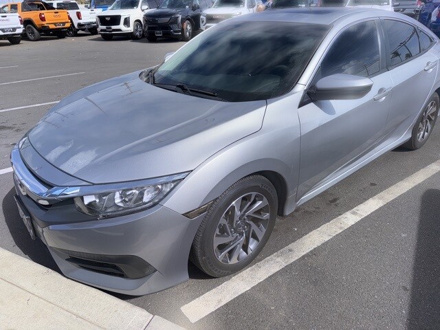 This Honda Civic has many features and is well equipped including Black Cloth, 16" Alloy Wheels, 4-Wheel Disc Brakes, 8 Speakers, ABS brakes, Air Conditioning, Alloy wheels, AM/FM radio, Apple CarPlay/Android Auto, Automatic temperature control, Brake assist, Bumpers: body-color, Cloth Seat Trim, Compass, Delay-off headlights, Driver door bin, Driver vanity mirror, Dual front impact airbags, Dual front side impact airbags, Electronic Stability Control, Emergency communication system, Exterior Parking Camera Rear, Four wheel independent suspension, Front anti-roll bar, Front Bucket Seats, Front Center Armrest, Front reading lights, Fully automatic headlights, Heated door mirrors, Illuminated entry, Low tire pressure warning, Occupant sensing airbag, Outside temperature display, Overhead airbag, Panic alarm, Passenger door bin, Passenger vanity mirror, Power door mirrors, Power moonroof, Power steering, Power windows, Radio data system, Radio: 180-Watt AM/FM/HD/SiriusXM Audio System, Rear anti-roll bar, Rear seat center armrest, Rear window defroster, Reclining Front Bucket Seats, Remote keyless entry, Security system, Speed control, Speed-sensing steering, Speed-Sensitive Wipers, Split folding rear seat, Steering wheel mounted audio controls, Tachometer, Telescoping steering wheel, Tilt steering wheel, Traction control, Trip computer, and Variably intermittent wipers. Lunar Silver Metallic 2017 Honda Civic EX FWD CVT 2.0L I4 DOHC 16V i-VTEC Black Cloth.