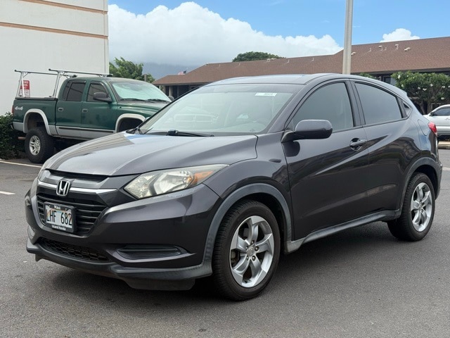 This Honda HR-V has many features and is well equipped including 4 Speakers, 4-Wheel Disc Brakes, 5.436 Axle Ratio, ABS brakes, Air Conditioning, Alloy wheels, AM/FM radio, Brake assist, Bumpers: body-color, CD player, Cloth Seat Trim, Driver door bin, Driver vanity mirror, Dual front impact airbags, Dual front side impact airbags, Electronic Stability Control, Exterior Parking Camera Rear, Front Bucket Seats, Front Center Armrest, Front reading lights, Front wheel independent suspension, Illuminated entry, Low tire pressure warning, Occupant sensing airbag, Outside temperature display, Overhead airbag, Panic alarm, Passenger door bin, Passenger vanity mirror, Power door mirrors, Power steering, Power windows, Radio data system, Radio: AM/FM/CD Audio System (160 Watts), Rear anti-roll bar, Rear window defroster, Rear window wiper, Remote keyless entry, Security system, Speed control, Split folding rear seat, Spoiler, Steering wheel mounted audio controls, Tachometer, Telescoping steering wheel, Tilt steering wheel, Traction control, and Trip computer. 2017 Honda HR-V LX FWD CVT 1.8L I4 SOHC 16V i-VTEC