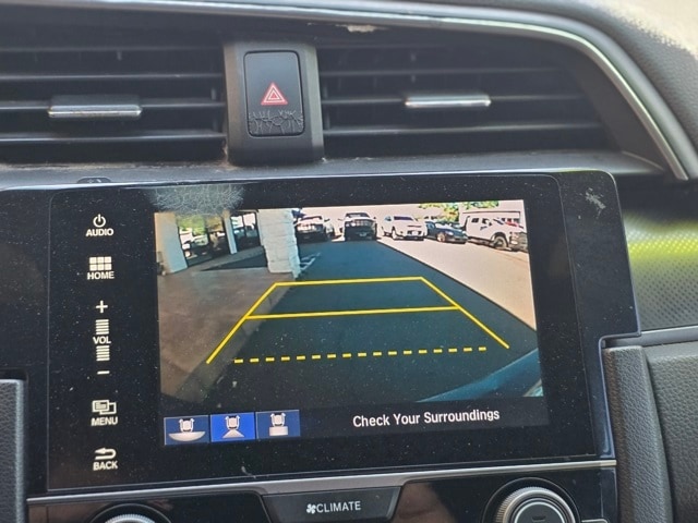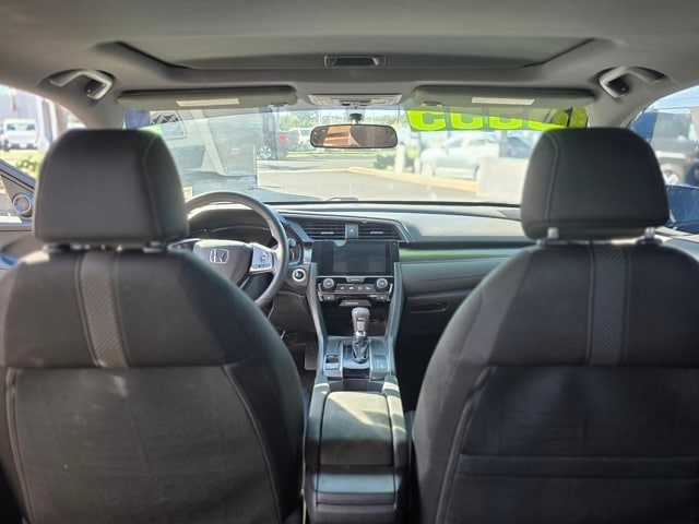 This Honda Civic has many features and is well equipped including Cloth, 4-Wheel Disc Brakes, 8 Speakers, ABS brakes, Air Conditioning, Alloy wheels, AM/FM radio: SiriusXM, Apple CarPlay/Android Auto, Automatic temperature control, Brake assist, Bumpers: body-color, Compass, Delay-off headlights, Driver door bin, Driver vanity mirror, Dual front impact airbags, Dual front side impact airbags, Electronic Stability Control, Emergency communication system: HondaLink, Exterior Parking Camera Rear, Fabric Seating Surfaces, Four wheel independent suspension, Front anti-roll bar, Front Bucket Seats, Front Center Armrest, Front dual zone A/C, Front fog lights, Front reading lights, Fully automatic headlights, Heated door mirrors, Illuminated entry, Low tire pressure warning, Occupant sensing airbag, Outside temperature display, Overhead airbag, Panic alarm, Passenger door bin, Passenger vanity mirror, Power door mirrors, Power moonroof, Power steering, Power windows, Radio data system, Radio: 180-Watt AM/FM/HD/SiriusXM Audio System, Rear anti-roll bar, Rear seat center armrest, Rear window defroster, Rear window wiper, Reclining Front Bucket Seats, Remote keyless entry, Security system, Speed control, Speed-sensing steering, Split folding rear seat, Spoiler, Steering wheel mounted audio controls, Tachometer, Telescoping steering wheel, Tilt steering wheel, Traction control, Trip computer, and Variably intermittent wipers. 2018 Honda Civic EX FWD CVT 1.5L I4 DOHC 16V Cloth.