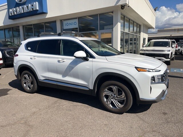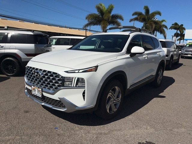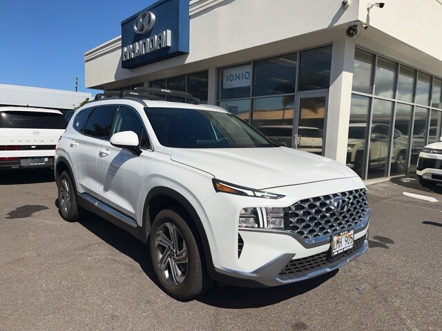 This Hyundai Santa Fe has many features and is well equipped including Option Group 01, AWD, Black, 18" x 7.5J Alloy Wheels, 4-Wheel Disc Brakes, 6 Speakers, ABS brakes, Air Conditioning, Alloy wheels, AM/FM radio: SiriusXM, Apple CarPlay & Android Auto, Auto High-beam Headlights, Axle Ratio: 4.081, Brake assist, Bumpers: body-color, Cargo Cover/Screen, Cargo Net, Cargo Tray, Carpeted Floor Mats, Delay-off headlights, Driver door bin, Driver vanity mirror, Dual front impact airbags, Dual front side impact airbags, Electronic Stability Control, Emergency communication system, Exterior Parking Camera Rear, Four wheel independent suspension, Front anti-roll bar, Front Bucket Seats, Front Center Armrest, Front reading lights, Fully automatic headlights, Heated door mirrors, Heated Front Bucket Seats, Heated front seats, Illuminated entry, Low tire pressure warning, Occupant sensing airbag, Outside temperature display, Overhead airbag, Overhead console, Panic alarm, Passenger door bin, Passenger vanity mirror, Power door mirrors, Power driver seat, Power steering, Power windows, Radio: AM/FM Display Audio, Rear anti-roll bar, Rear seat center armrest, Rear window defroster, Rear window wiper, Remote keyless entry, Security system, Speed control, Speed-sensing steering, Split folding rear seat, Spoiler, Steering wheel mounted audio controls, Tachometer, Telescoping steering wheel, Tilt steering wheel, Traction control, Trip computer, Variably intermittent wipers, and YES Essentials Stain-Resistant Cloth Seat Trim. Quartz White 2022 Hyundai Santa Fe SEL AWD 8-Speed Automatic with SHIFTRONIC 2.5L I4 AWD, Black.