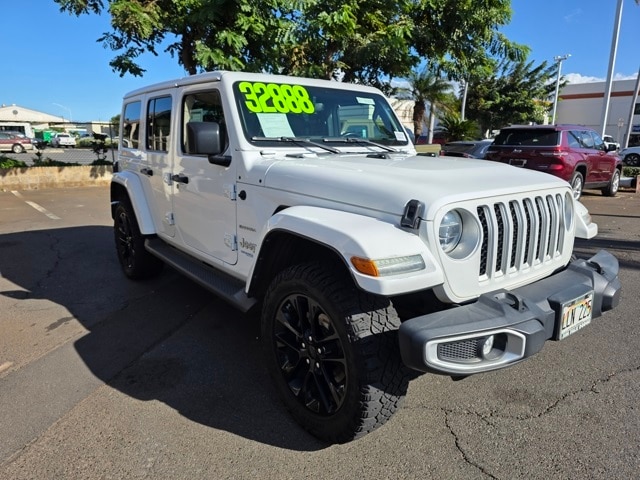 View this used 2021 Jeep Wrangler 4xe SUV Sahara for sale at Jim Falk Hyundai of Maui, serving the Kahului, Lahaina, Makawao, Paia, and Napili-Honokowai area with used Jeep Wrangler 4xe sales.