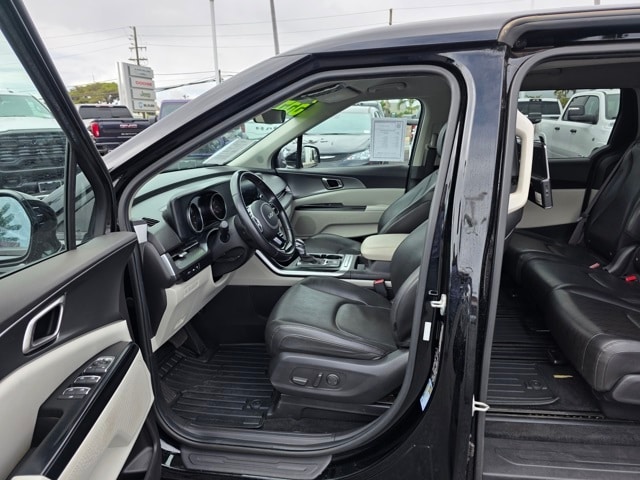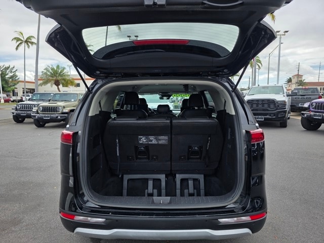 This Kia Carnival has many features and is well equipped including 2-Way Power Driver's Lumbar Support, 3.51 Axle Ratio, 3rd row seats: split-bench, 4-Wheel Disc Brakes, 6 Speakers, 8 Way Power Driver's Seat, ABS brakes, Air Conditioning, Alloy wheels, AM/FM radio, Apple CarPlay & Android Auto, Artificial Leather Seat Trim, Auto High-beam Headlights, Brake assist, Bumpers: body-color, Cargo Net, Carpeted Floor Mats (8-Passenger), Delay-off headlights, Driver door bin, Driver vanity mirror, Dual front impact airbags, Dual front side impact airbags, Electronic Stability Control, Four wheel independent suspension, Front anti-roll bar, Front Bucket Seats, Front Center Armrest, Front reading lights, Fully automatic headlights, Heated door mirrors, Heated Front Bucket Seats, Heated front seats, Illuminated entry, Knee airbag, Leather Shift Knob, Leather steering wheel, Low tire pressure warning, Occupant sensing airbag, Outside temperature display, Overhead airbag, Overhead console, Panic alarm, Passenger door bin, Passenger vanity mirror, Power door mirrors, Power driver seat, Power steering, Power windows, Radio: AM/FM Audio System, Rear air conditioning, Rear anti-roll bar, Rear reading lights, Rear window defroster, Rear window wiper, Reclining 3rd row seat, Remote keyless entry, Security system, Speed control, Speed-sensing steering, Split folding rear seat, Spoiler, Steering wheel mounted audio controls, Tachometer, Telescoping steering wheel, Textured Bumper Applique, Tilt steering wheel, Traction control, Trip computer, Turn signal indicator mirrors, Variably intermittent wipers, and Wheels: 6.5J x 17" Clear Silver Painted Alloy. Aurora Black 2022 Kia Carnival LXS FWD 8-Speed Automatic V6