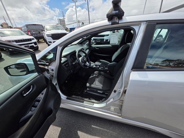 This Nissan Leaf has many features and is well equipped including 17" Aluminum Alloy Wheels, 4-Wheel Disc Brakes, 6 Speakers, ABS brakes, Air Conditioning, Alloy wheels, AM/FM radio: SiriusXM, Automatic temperature control, Brake assist, Bumpers: body-color, Cloth Seat Trim, Delay-off headlights, Driver door bin, Driver vanity mirror, Dual front impact airbags, Dual front side impact airbags, Electronic Stability Control, Floor Mats & Cargo Area Mat, Front anti-roll bar, Front Bucket Seats, Front Center Armrest, Front fog lights, Front reading lights, Front wheel independent suspension, Fully automatic headlights, Illuminated entry, Low tire pressure warning, Navigation System, NissanConnect featuring Apple CarPlay and Android Auto, Occupant sensing airbag, Outside temperature display, Overhead airbag, Overhead console, Panic alarm, Passenger door bin, Passenger vanity mirror, Power door mirrors, Power steering, Power windows, Radio data system, Radio: NissanConnect Navigation System, Rear anti-roll bar, Rear window defroster, Rear window wiper, Remote keyless entry, Security system, Speed control, Speed-sensing steering, Splash Guards, Split folding rear seat, Spoiler, Steering wheel mounted audio controls, Tilt steering wheel, Traction control, Trip computer, and Variably intermittent wipers. Brilliant Silver Metallic 2019 Nissan Leaf SV FWD Single Speed Reducer Electric Motor
