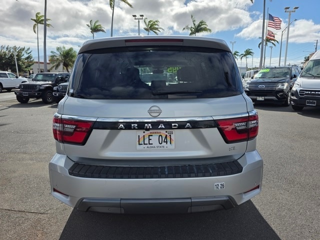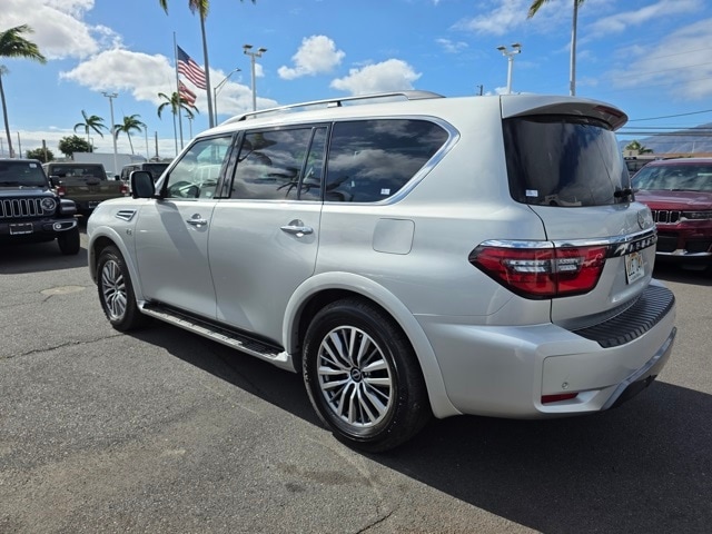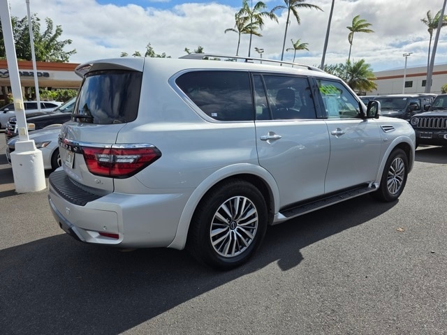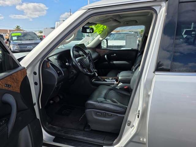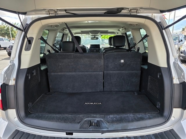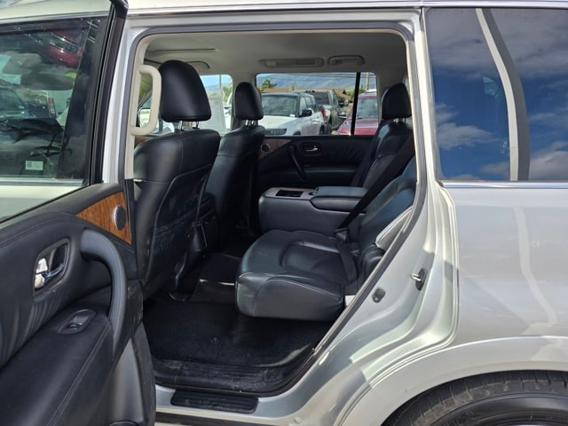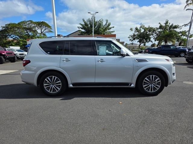 This Nissan Armada has many features and is well equipped including Captain's Chairs Package (2nd Row Captain's Chairs and 2nd Row Center Console w/Padded Armrest), 4WD, 13 Speakers, 2.94 Axle Ratio, 20" Painted Alloy Wheels, 3rd Row Carpeted Floor Mats - Captain Seat, 3rd row seats: split-bench, 4-Wheel Disc Brakes, ABS brakes, Air Conditioning, Alloy wheels, AM/FM radio: SiriusXM, Anti-whiplash front head restraints, Auto High-beam Headlights, Auto tilt-away steering wheel, Auto-dimming door mirrors, Auto-dimming Rear-View mirror, Auto-leveling suspension, Automatic temperature control, Brake assist, Bumpers: body-color, Delay-off headlights, Driver door bin, Driver vanity mirror, Dual front impact airbags, Dual front side impact airbags, Electronic Stability Control, Emergency communication system: NissanConnect Services, Exterior Parking Camera Rear, Four wheel independent suspension, Front anti-roll bar, Front Bucket Seats, Front Center Armrest, Front dual zone A/C, Front fog lights, Front reading lights, Fully automatic headlights, Garage door transmitter: HomeLink, Heated door mirrors, Heated Front Bucket Seats, Heated front seats, Illuminated entry, Leather Seat Trim, Leather Shift Knob, Low tire pressure warning, Memory seat, Navigation System, NissanConnect featuring Apple CarPlay and Android Auto, Occupant sensing airbag, Outside temperature display, Overhead airbag, Overhead console, Panic alarm, Passenger door bin, Passenger vanity mirror, Power door mirrors, Power driver seat, Power Liftgate, Power moonroof, Power passenger seat, Power steering, Power windows, Radio: NissanConnect w/SiriusXM, Rear air conditioning, Rear anti-roll bar, Rear reading lights, Rear seat center armrest, Rear window defroster, Rear window wiper, Reclining 3rd row seat, Remote keyless entry, Security system, Speed control, Speed-sensing steering, Speed-Sensitive Wipers, Split folding rear seat, Spoiler, Steering wheel memory, Steering wheel mounted audio controls, Tachometer, Telescoping steering wheel, Tilt steering wheel, Traction control, Trip computer, Turn signal indicator mirrors, Variably intermittent wipers, and Voltmeter. Brilliant Silver Metallic 2021 Nissan Armada SL 4WD 7-Speed Automatic 5.6L V8 DOHC 32V LEV3-ULEV125 400hp 4WD.