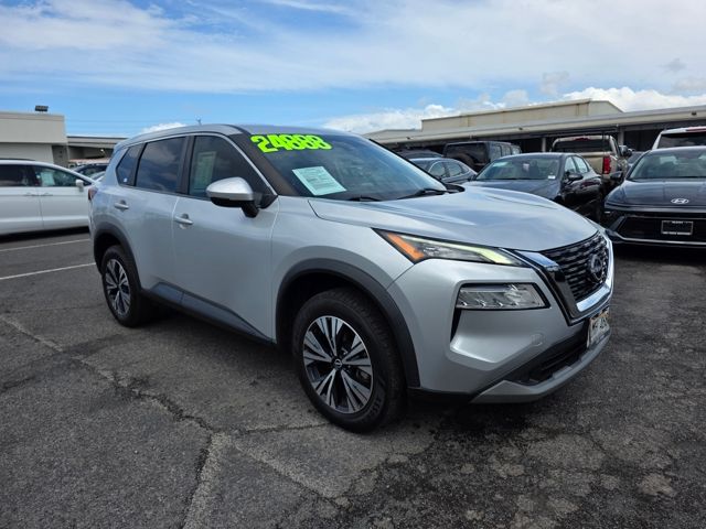 This Nissan Rogue has many features and is well equipped including AWD, 18" Aluminum Alloy Wheels, 4-Wheel Disc Brakes, 5.604 Axle Ratio, 6 Speakers, ABS brakes, Air Conditioning, Alloy wheels, AM/FM Radio, AM/FM radio: SiriusXM, Auto High-beam Headlights, Automatic temperature control, Brake assist, Bumpers: body-color, Cloth Seat Trim, Delay-off headlights, Driver door bin, Driver vanity mirror, Dual front impact airbags, Dual front side impact airbags, Electronic Stability Control, Emergency communication system: NissanConnect Services, First Aid Kit, Floor Mats w/1-Piece Cargo Area Protector, Four wheel independent suspension, Front anti-roll bar, Front Bucket Seats, Front Center Armrest, Front dual zone A/C, Front reading lights, Fully automatic headlights, Heated door mirrors, Illuminated entry, Knee airbag, Low tire pressure warning, NissanConnect featuring Apple CarPlay and Android Auto, Occupant sensing airbag, Outside temperature display, Overhead airbag, Overhead console, Panic alarm, Passenger door bin, Passenger vanity mirror, Power door mirrors, Power driver seat, Power steering, Power windows, Radio data system, Rear anti-roll bar, Rear Parking Sensors, Rear seat center armrest, Rear side impact airbag, Rear window defroster, Rear window wiper, Remote keyless entry, Security system, Speed control, Speed-Sensitive Wipers, Split folding rear seat, Spoiler, Steering wheel mounted audio controls, Tachometer, Telescoping steering wheel, Tilt steering wheel, Traction control, Trip computer, Turn signal indicator mirrors, and Variably intermittent wipers. Brilliant Silver Metallic 2022 Nissan Rogue SV AWD CVT with Xtronic 1.5L I3 Turbocharged DOHC 12V LEV3-ULEV50 201hp AWD.