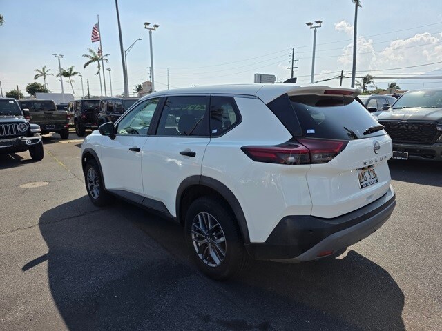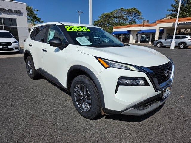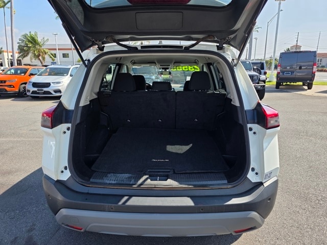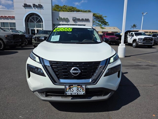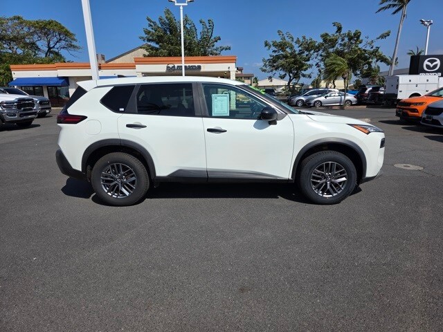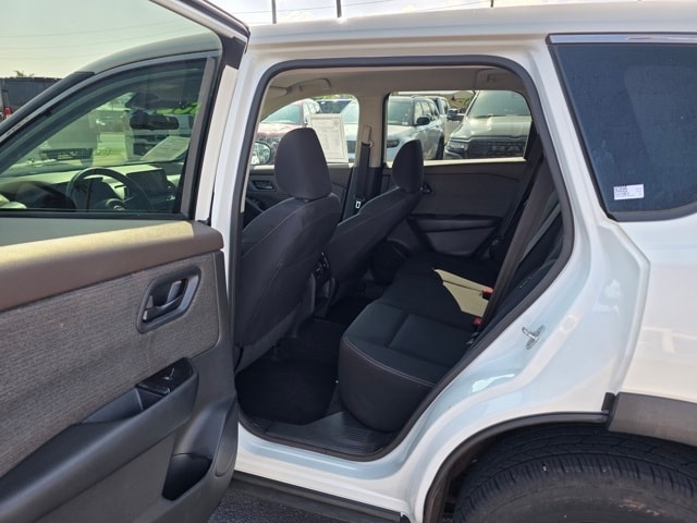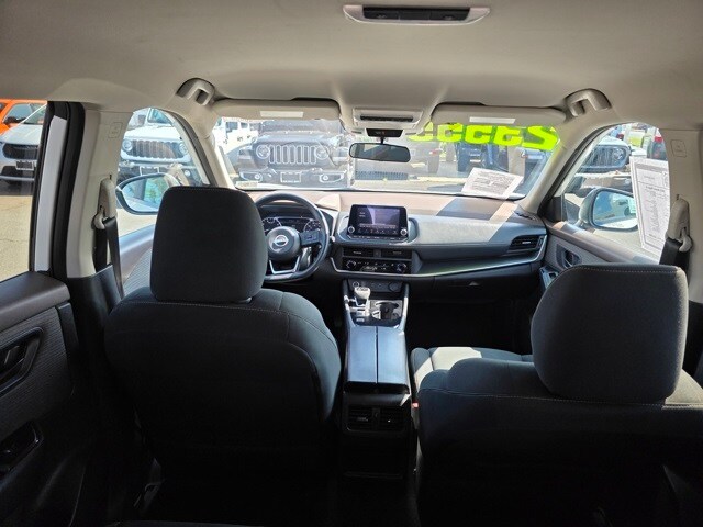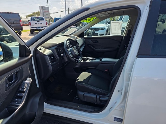 This Nissan Rogue has many features and is well equipped including 17" Aluminum Alloy Wheels, 4 Speakers, 4-Wheel Disc Brakes, 5.604 Axle Ratio, ABS brakes, Air Conditioning, Alloy wheels, AM/FM Radio, AM/FM radio: SiriusXM, Auto High-beam Headlights, Blind Spot Warning, Brake assist, Bumpers: body-color, Cloth Seat Trim, Delay-off headlights, Driver door bin, Driver vanity mirror, Dual front impact airbags, Dual front side impact airbags, Electronic Stability Control, Four wheel independent suspension, Front anti-roll bar, Front Bucket Seats, Front Center Armrest, Front reading lights, Fully automatic headlights, Illuminated entry, Knee airbag, Low tire pressure warning, NissanConnect featuring Apple CarPlay and Android Auto, Occupant sensing airbag, Outside temperature display, Overhead airbag, Overhead console, Panic alarm, Passenger door bin, Passenger vanity mirror, Power door mirrors, Power steering, Power windows, Radio data system, Rear anti-roll bar, Rear Parking Sensors, Rear seat center armrest, Rear side impact airbag, Rear window defroster, Rear window wiper, Remote keyless entry, Speed control, Speed-Sensitive Wipers, Split folding rear seat, Spoiler, Steering wheel mounted audio controls, Tachometer, Telescoping steering wheel, Tilt steering wheel, Traction control, Trip computer, and Variably intermittent wipers. Pearl White Tricoat/Super Black 2023 Nissan Rogue S FWD CVT with Xtronic 1.5L I3 Turbocharged DOHC 12V LEV3-ULEV50 201hp
