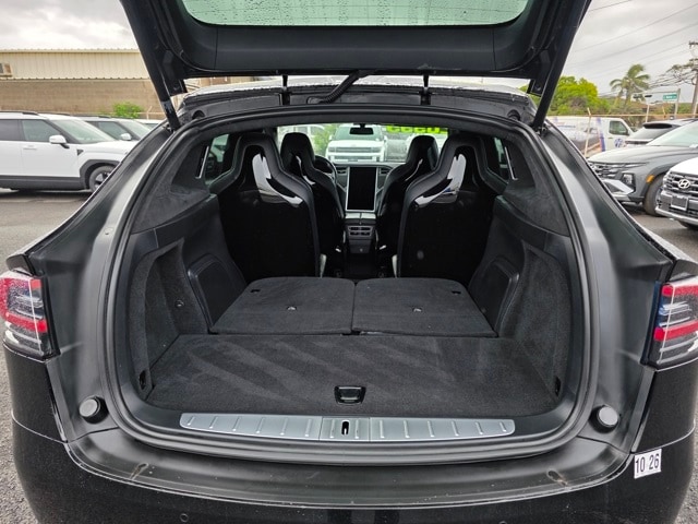 This Tesla Model X has many features and is well equipped including ABS brakes, Alloy wheels, Compass, Electronic Stability Control, Front Bucket Seats, Front Center Armrest, Front dual zone A/C, Heated door mirrors, Heated front seats, Illuminated entry, Low tire pressure warning, Navigation System, Power Liftgate, Power passenger seat, Remote keyless entry, Split folding rear seat, Traction control, 4-Wheel Disc Brakes, 9 Speakers, 9.73 Axle Ratio, Adaptive suspension, Air Conditioning, AM/FM radio, Auto-dimming door mirrors, Auto-dimming Rear-View mirror, Auto-leveling suspension, Automatic temperature control, Brake assist, Bumpers: body-color, Delay-off headlights, Door auto-latch, Driver door bin, Driver vanity mirror, Dual front impact airbags, Dual front side impact airbags, Exterior Parking Camera Rear, Four wheel independent suspension, Front anti-roll bar, Front reading lights, Fully automatic headlights, Garage door transmitter: Homelink, Genuine wood console insert, Genuine wood dashboard insert, Genuine wood door panel insert, Heated Front Seats w/Memory, Knee airbag, Leather steering wheel, Memory seat, Multi-Pattern Textile Seat Trim, Occupant sensing airbag, Outside temperature display, Overhead airbag, Passenger door bin, Passenger vanity mirror, Power adjustable front head restraints, Power door mirrors, Power driver seat, Power steering, Power windows, Radio data system, Radio: AM/FM/HD/USB w/17" Touchscreen Controls, Rain sensing wipers, Rear anti-roll bar, Rear reading lights, Rear side impact airbag, Rear window defroster, Security system, Speed control, Speed-sensing steering, Speed-Sensitive Wipers, Spoiler, Standard Suspension, Steering wheel memory, Steering wheel mounted A/C controls, Steering wheel mounted audio controls, Telescoping steering wheel, Tilt steering wheel, Trip computer, Variably intermittent wipers, and Wheels: 20" x 9" Fr/20" x 10" Silver Alloy. Solid Black 2016 Tesla Model X P90D AWD 1-Speed Automatic Electric Motor ABS brakes, Alloy wheels, Compass, Electronic Stability Control, Front Bucket Seats, Front Center Armrest, Front dual zone A/C, Heated door mirrors, Heated front seats, Illuminated entry, Low tire pressure warning, Navigation System, Power Liftgate, Power passenger seat, Remote keyless entry, Split folding rear seat, Traction control.