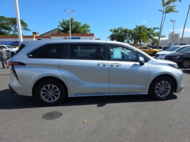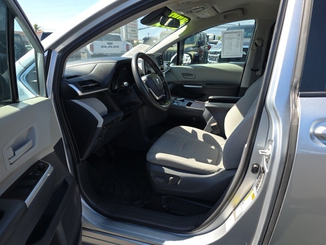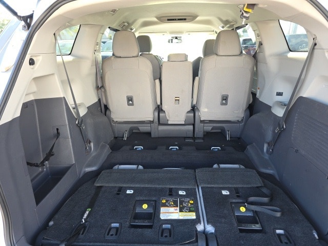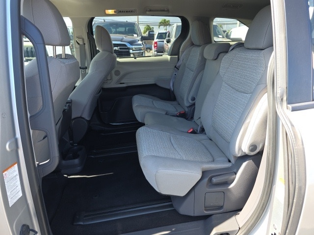 This Toyota Sienna has many features and is well equipped including 17" Alloy Wheels, 3rd row seats: split-bench, 4-Wheel Disc Brakes, 6 Speakers, ABS brakes, Air Conditioning, Alloy wheels, AM/FM radio: SiriusXM, Apple CarPlay/Android Auto, Auto High-beam Headlights, Auto-dimming door mirrors, Automatic temperature control, Axle Ratio: TBA, Brake assist, Bumpers: body-color, Compass, Delay-off headlights, Door auto-latch, Driver door bin, Driver vanity mirror, Driver's Seat Mounted Armrest, Dual front impact airbags, Dual front side impact airbags, Electronic Stability Control, Emergency communication system: Safety Connect with 1-year trial, Exterior Parking Camera Rear, Fabric Seat Material, Four wheel independent suspension, Front anti-roll bar, Front Bucket Seats, Front dual zone A/C, Front reading lights, Fully automatic headlights, Heated door mirrors, Illuminated entry, Knee airbag, Lane Departure Warning System, Low tire pressure warning, Occupant sensing airbag, Outside temperature display, Overhead airbag, Overhead console, Panic alarm, Passenger door bin, Passenger seat mounted armrest, Passenger vanity mirror, Power door mirrors, Power driver seat, Power steering, Power windows, Radio data system, Radio: Audio, Rear air conditioning, Rear anti-roll bar, Rear reading lights, Rear seat center armrest, Rear side impact airbag, Rear window defroster, Rear window wiper, Reclining 3rd row seat, Remote keyless entry, Speed control, Speed-sensing steering, Split folding rear seat, Spoiler, Steering wheel mounted audio controls, Tachometer, Telescoping steering wheel, Tilt steering wheel, Traction control, Trip computer, Turn signal indicator mirrors, and Variably intermittent wipers. 2021 Toyota Sienna LE 8 Passenger FWD CVT 2.5L I4