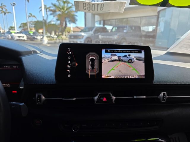 This Toyota GR Supra has many features and is well equipped including 10 Speakers, 4-Wheel Disc Brakes, ABS brakes, Adaptive suspension, Air Conditioning, Alcantara Seat Trim, Alloy wheels, AM/FM radio: SiriusXM, Auto High-beam Headlights, Auto-dimming door mirrors, Auto-dimming Rear-View mirror, Automatic temperature control, Brake assist, Bumpers: body-color, Child-Seat-Sensing Airbag, Delay-off headlights, Driver door bin, Driver vanity mirror, Dual front impact airbags, Dual front side impact airbags, Electronic Stability Control, Exterior Parking Camera Rear, Four wheel independent suspension, Front anti-roll bar, Front Bucket Seats, Front Center Armrest, Front dual zone A/C, Front fog lights, Front reading lights, Fully automatic headlights, Garage door transmitter: HomeLink, Heated door mirrors, Heated front seats, Heated Front Sport Seats, Illuminated entry, Knee airbag, Leather Shift Knob, Leather steering wheel, Low tire pressure warning, Memory seat, Occupant sensing airbag, Outside temperature display, Overhead airbag, Panic alarm, Passenger door bin, Passenger vanity mirror, Power door mirrors, Power driver seat, Power passenger seat, Power steering, Power windows, Radio data system, Radio: AM/FM w/205W HiFi Sound System, Rain sensing wipers, Rear anti-roll bar, Rear window defroster, Remote keyless entry, Security system, Speed control, Speed-sensing steering, Speed-Sensitive Wipers, Steering wheel mounted audio controls, Tachometer, Telescoping steering wheel, Tilt steering wheel, Traction control, Trip computer, Turn signal indicator mirrors, Variably intermittent wipers, and Wheels: 19" Forged Aluminum. Absolute Zero 2023 Toyota GR Supra 3.0 RWD 6-Speed Manual 3.0L I6 DOHC 24V