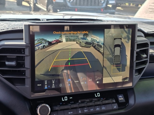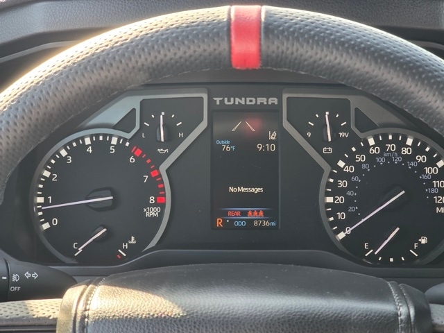 This Toyota Tundra has many features and is well equipped including 4WD, Black w/Premium Leather Seat Trim, ABS brakes, Active Cruise Control, Alloy wheels, Electronic Stability Control, Front dual zone A/C, Heated door mirrors, Heated front seats, Heated rear seats, Illuminated entry, Low tire pressure warning, Navigation System, Power moonroof, Premium Leather Seat Trim, Remote keyless entry, Traction control, 10-Way Pwr Adj Heated and Ventilated Front Seats, 12 Speakers, 3.31 Axle Ratio, 4-Wheel Disc Brakes, Air Conditioning, AM/FM radio: SiriusXM, Apple CarPlay/Android Auto, Auto High-beam Headlights, Auto-dimming door mirrors, Auto-dimming Rear-View mirror, Automatic temperature control, Brake assist, Bumpers: body-color, Delay-off headlights, Driver door bin, Driver vanity mirror, Dual front impact airbags, Dual front side impact airbags, Emergency communication system: Safety Connect (10-year trial), Exterior Parking Camera Rear, Front anti-roll bar, Front Bucket Seats, Front Center Armrest, Front fog lights, Front reading lights, Front wheel independent suspension, Fully automatic headlights, Garage door transmitter: HomeLink, Heated steering wheel, Knee airbag, Leather Shift Knob, Leather steering wheel, Memory seat, Occupant sensing airbag, Outside temperature display, Overhead airbag, Overhead console, Panic alarm, Passenger door bin, Passenger vanity mirror, Power door mirrors, Power driver seat, Power passenger seat, Power steering, Power windows, Radio data system, Radio: Audio Multimedia System, Rain sensing wipers, Rear reading lights, Rear seat center armrest, Rear step bumper, Rear window defroster, Safety Connect, Security system, Speed control, Speed-sensing steering, Split folding rear seat, Steering wheel memory, Steering wheel mounted audio controls, Tachometer, Telescoping steering wheel, Tilt steering wheel, Trip computer, Turn signal indicator mirrors, Variably intermittent wipers, Ventilated front seats, Ventilated rear seats, Voltmeter, and Wheels: 20" Dark Painted Alloy. Magnetic Gray Metallic 2025 Toyota Tundra Platinum 4WD 10-Speed Automatic 3.4L V6 4WD, Black w/Premium Leather Seat Trim, ABS brakes, Active Cruise Control, Alloy wheels, Electronic Stability Control, Front dual zone A/C, Heated door mirrors, Heated front seats, Heated rear seats, Illuminated entry, Low tire pressure warning, Navigation System, Power moonroof, Premium Leather Seat Trim, Remote keyless entry, Traction control.